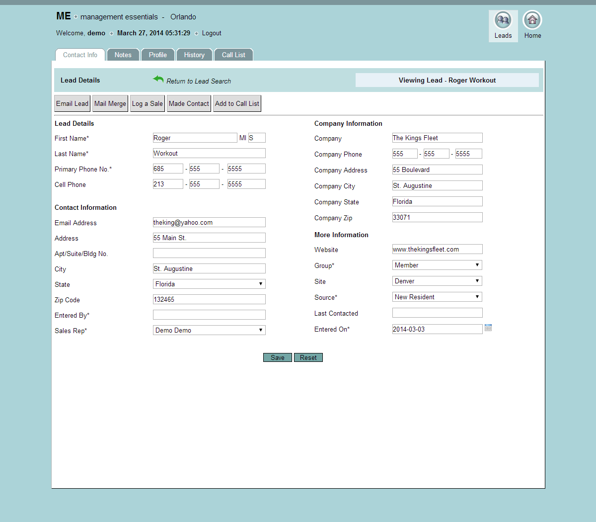 demographic data and a profile for each of your sales prospects.
