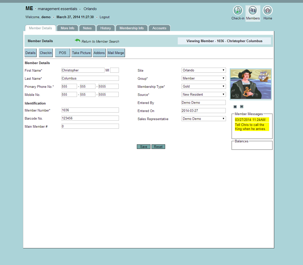 to the Member screen to